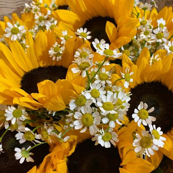 Букет из ромашек и подсолнухов